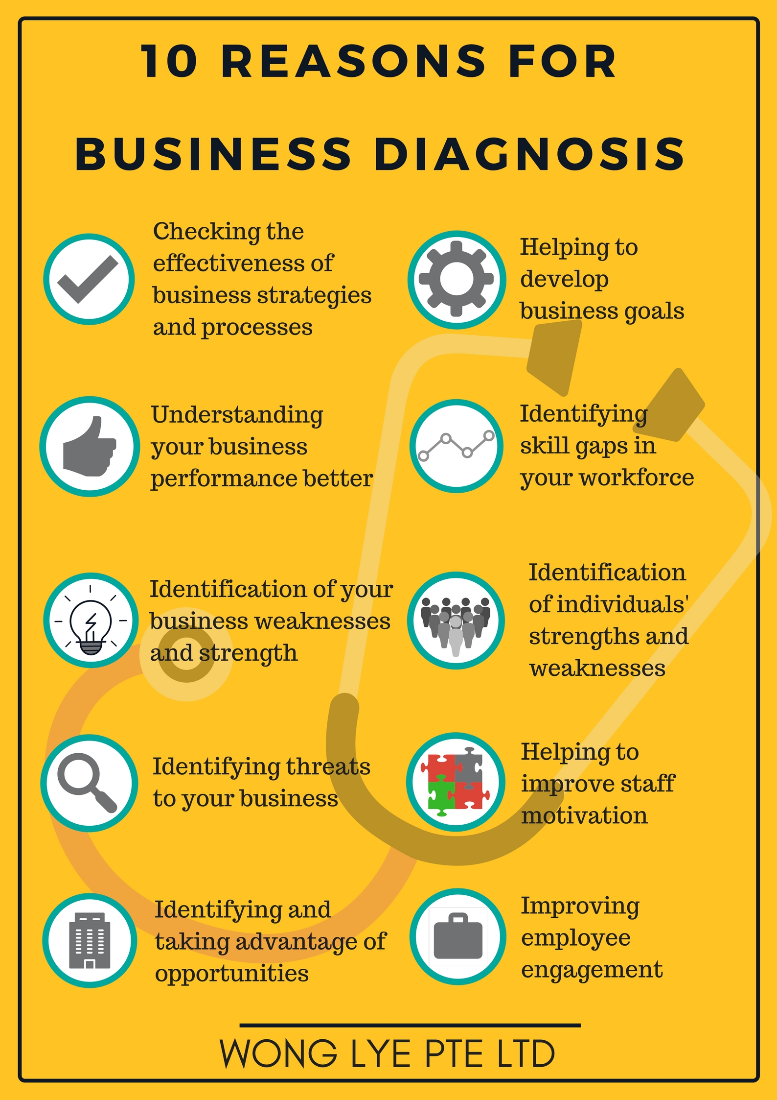 Business diagnosis is increasingly vital to today's business environment. By evaluating your organization’s current capabilities, identifying problems and opportunities, discovering and recommending solutions, a plan of action can be made for moving forward.
